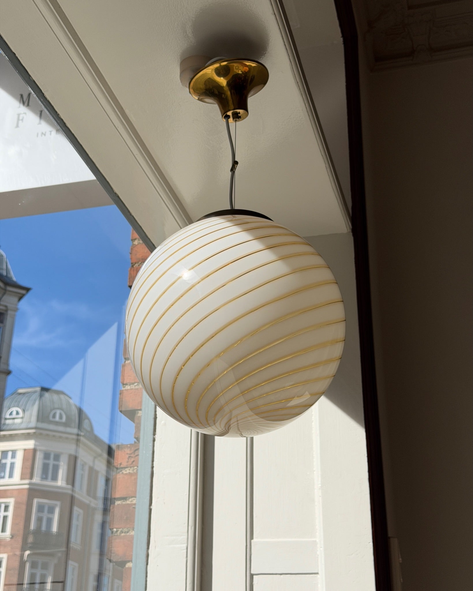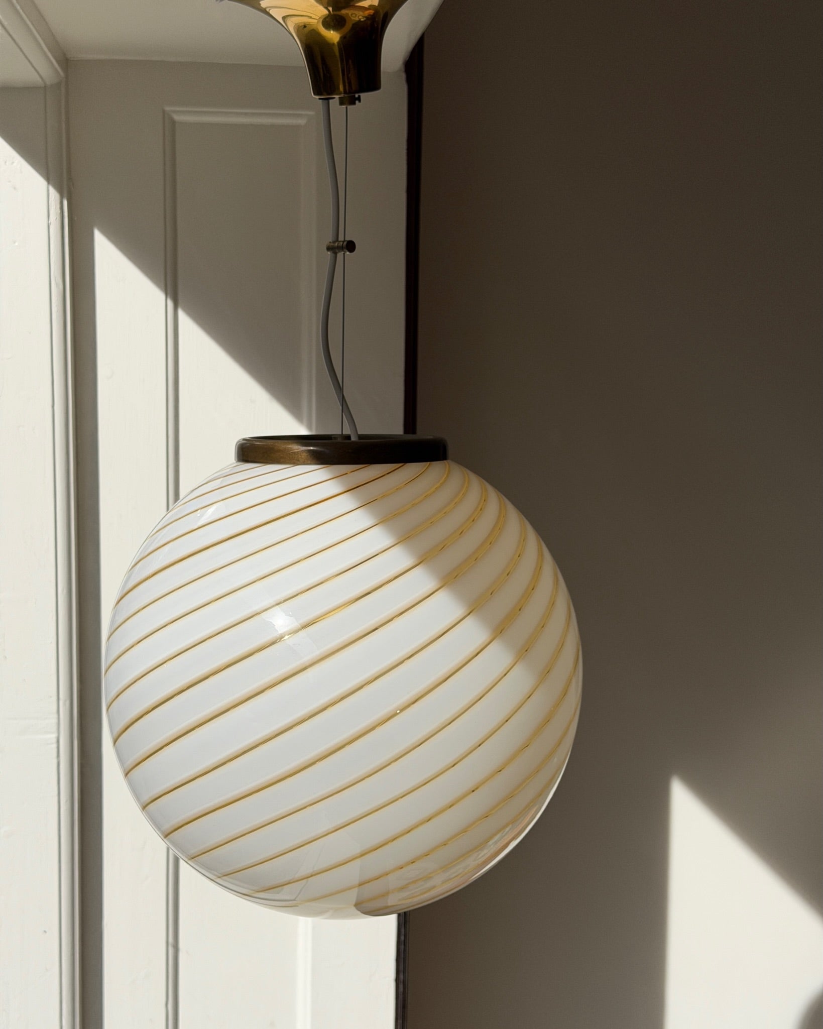 Vintage golden/clear/white swirl Murano ceiling lamp (D35)