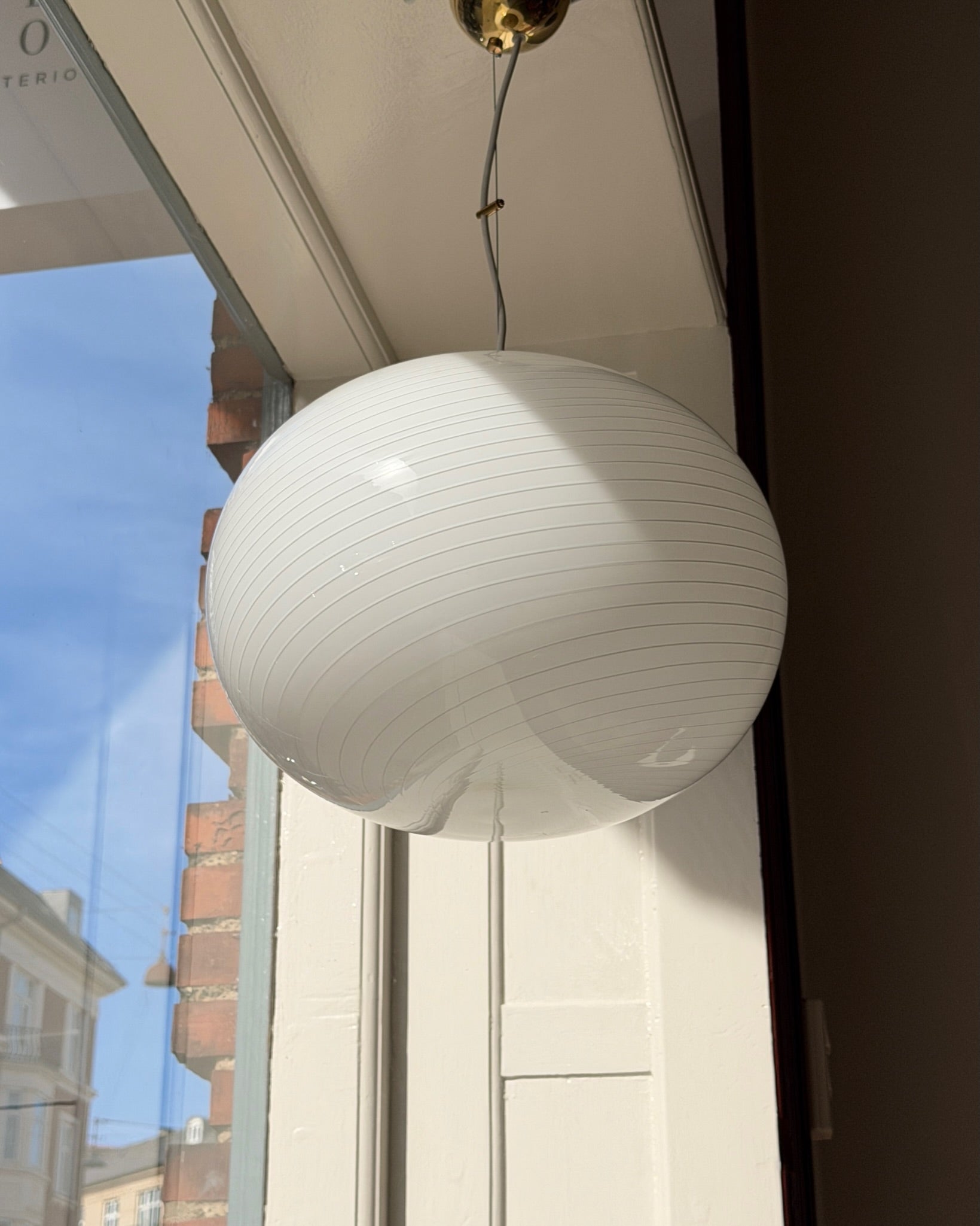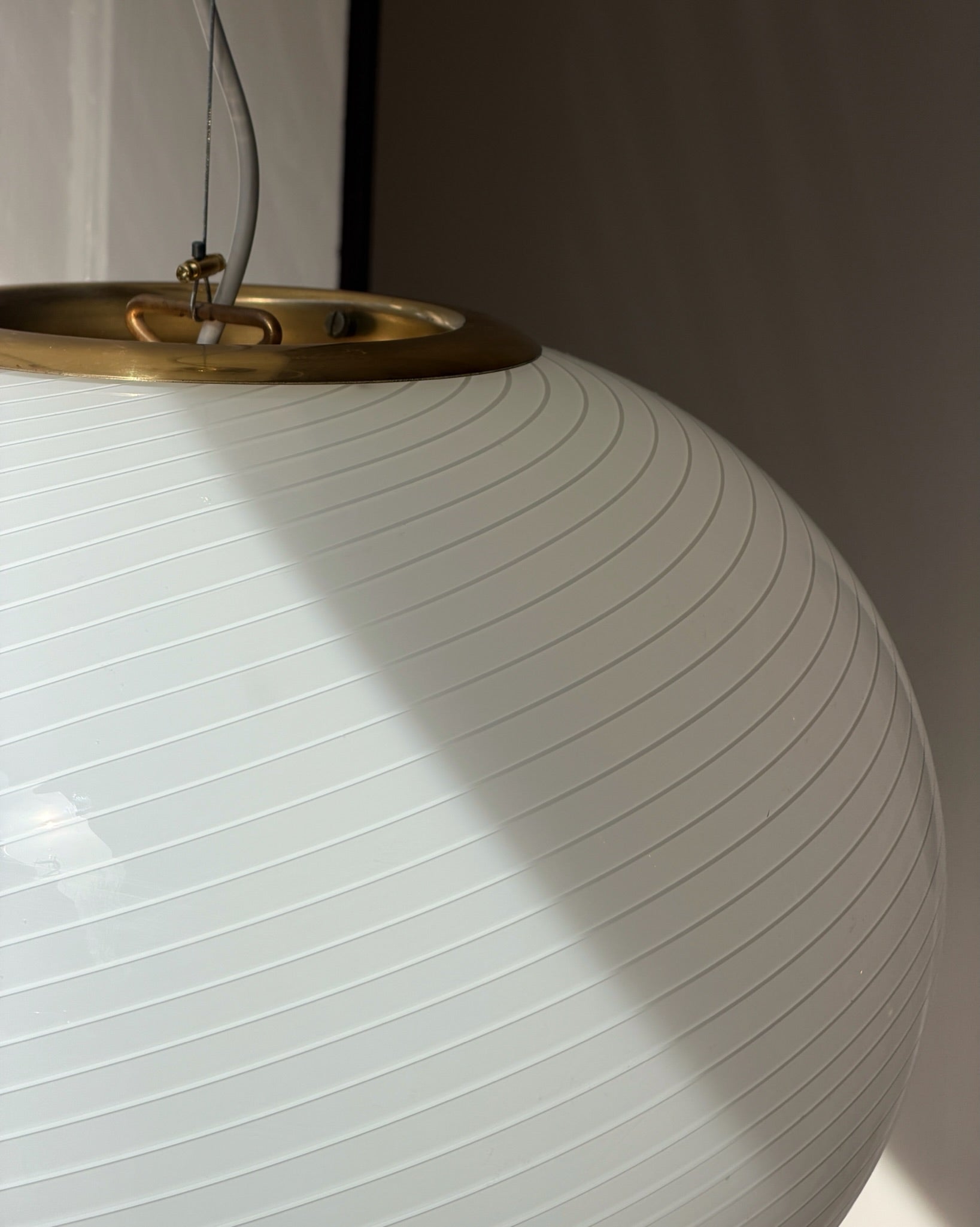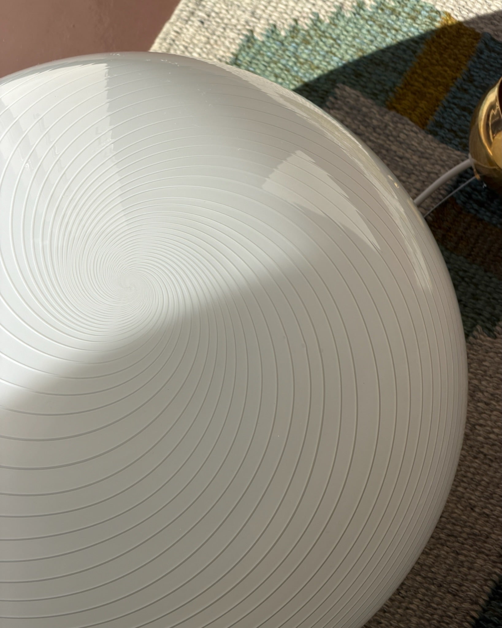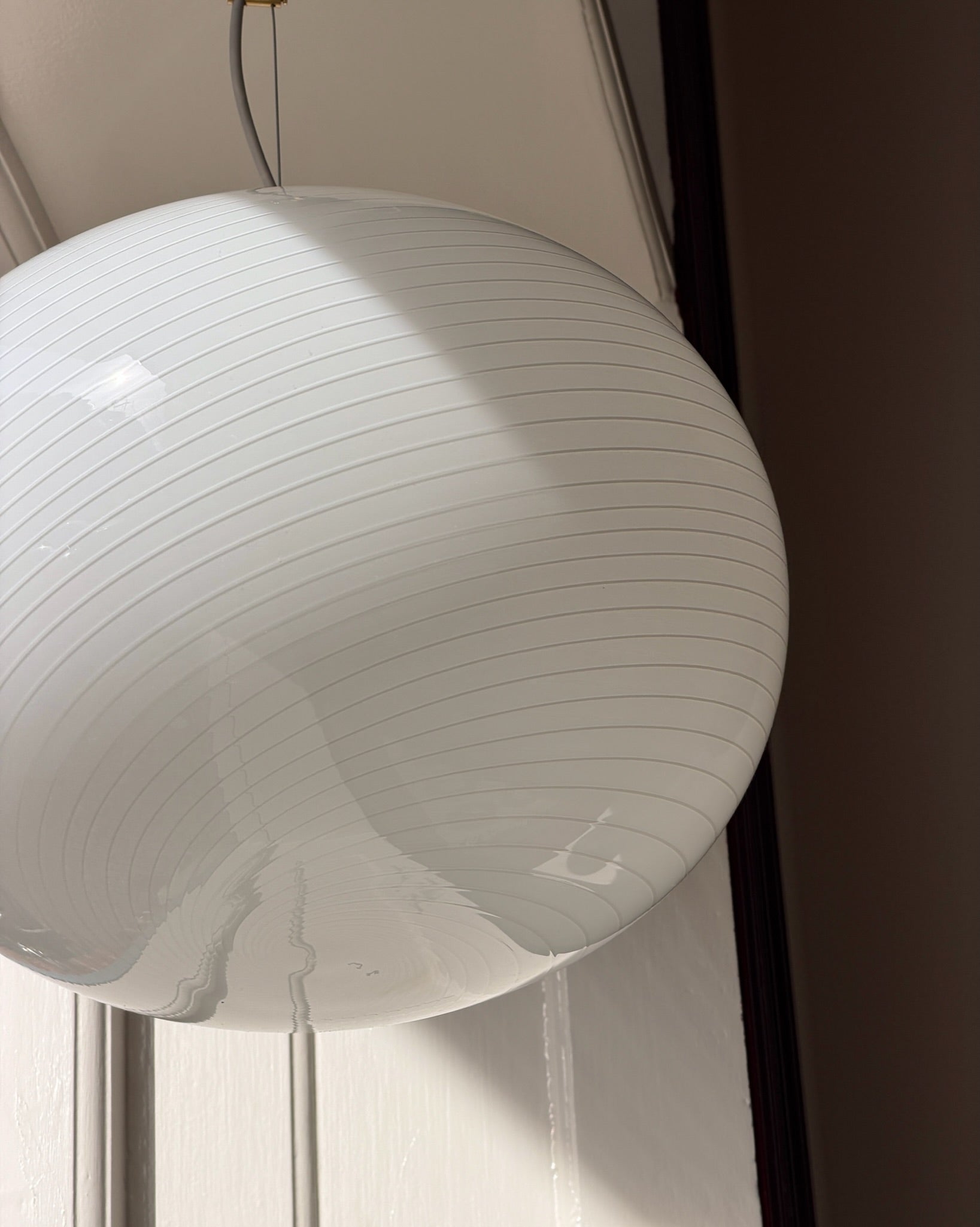 Vintage Murano swirl eggshell/white ceiling lamp, Oval shape, D42 x H33 cm.