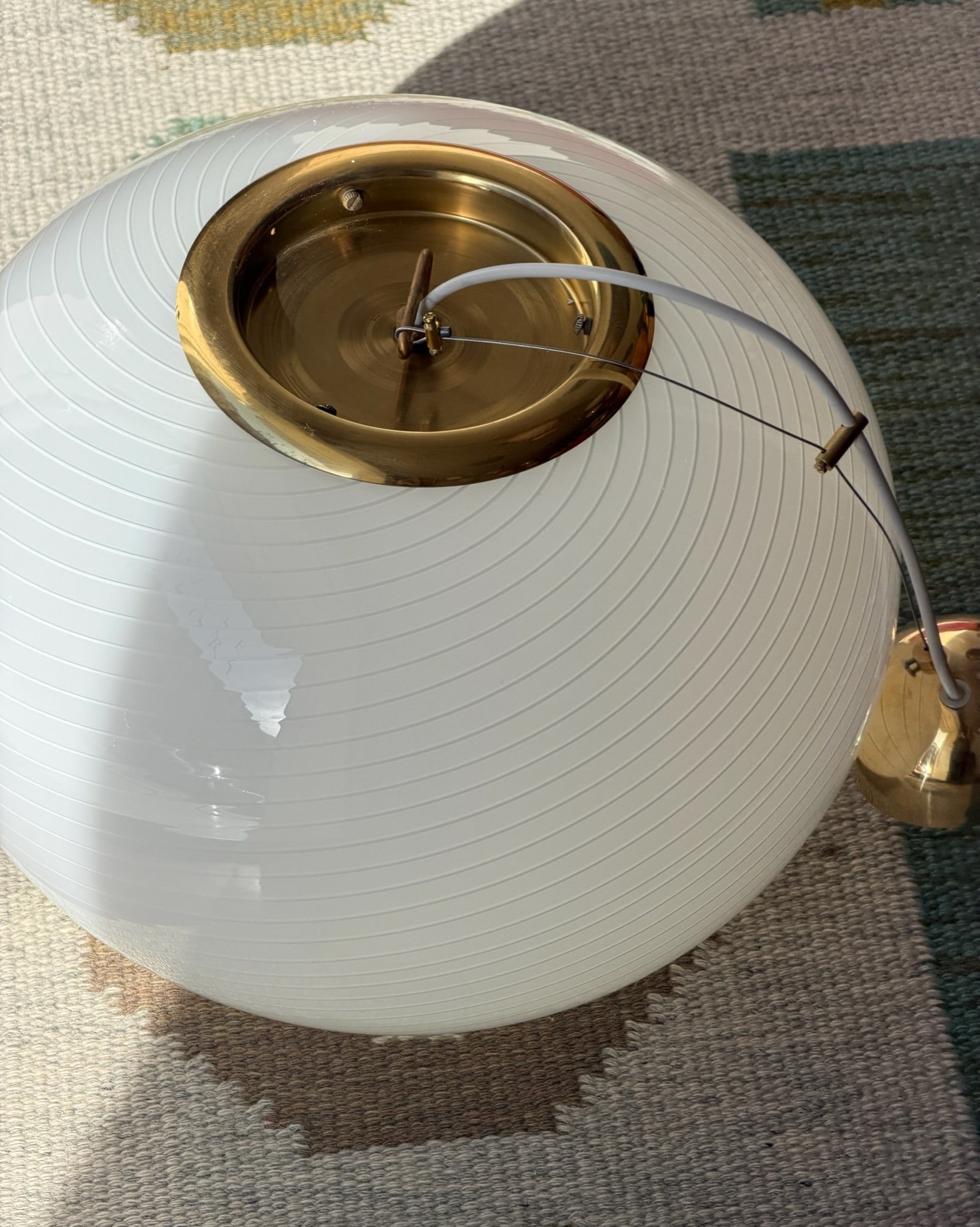 Vintage oval eggshell/white Murano ceiling lamp (D42)