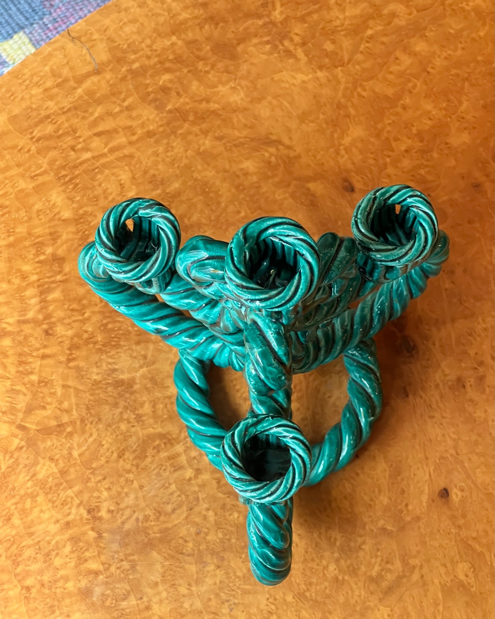 Vintage green twisted ceramic candle holder