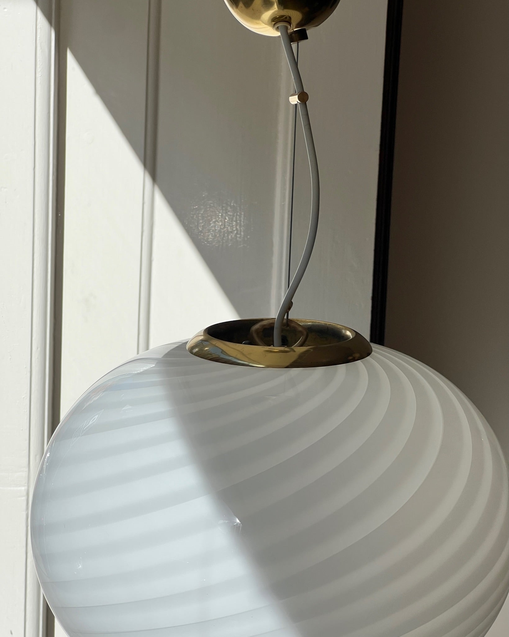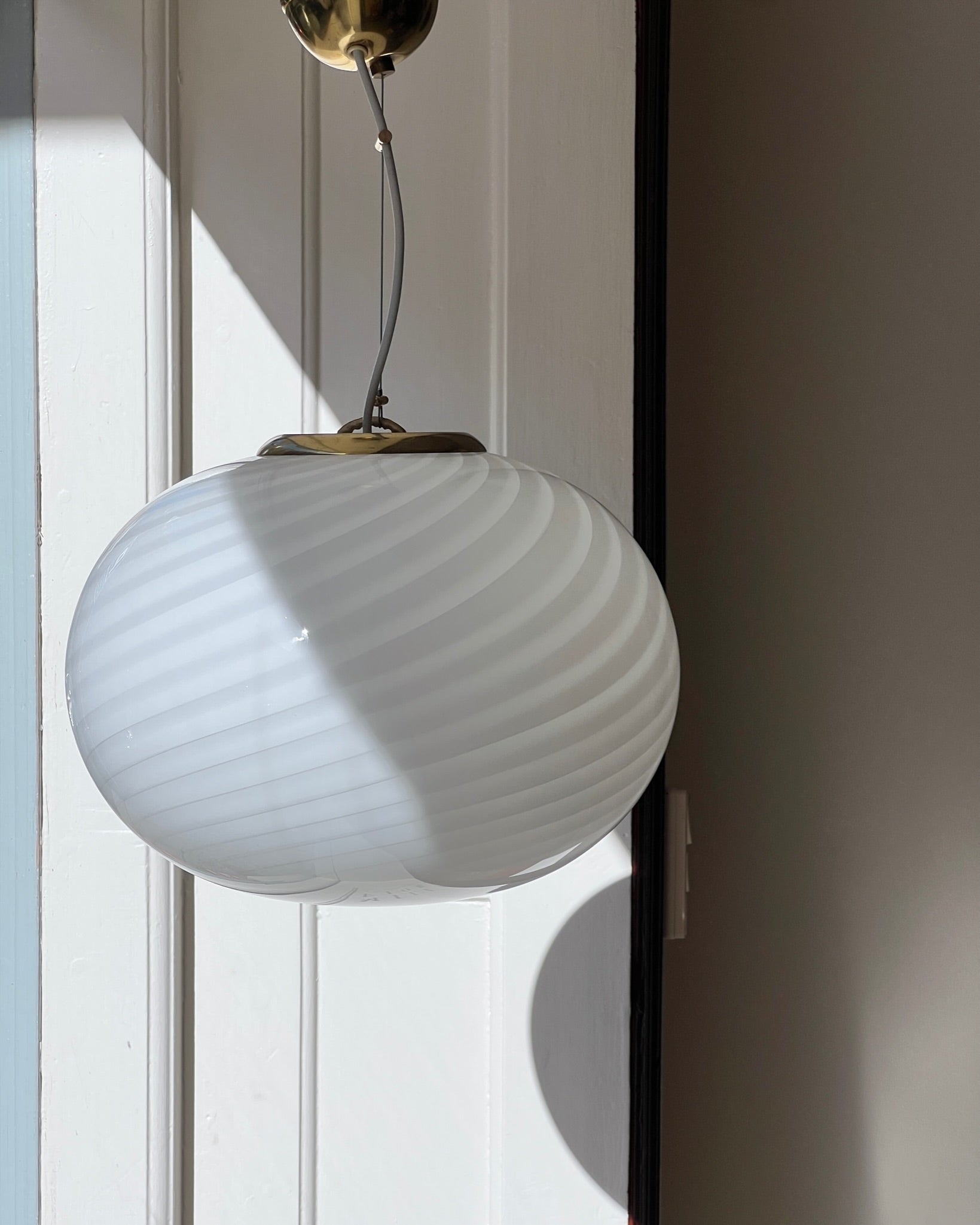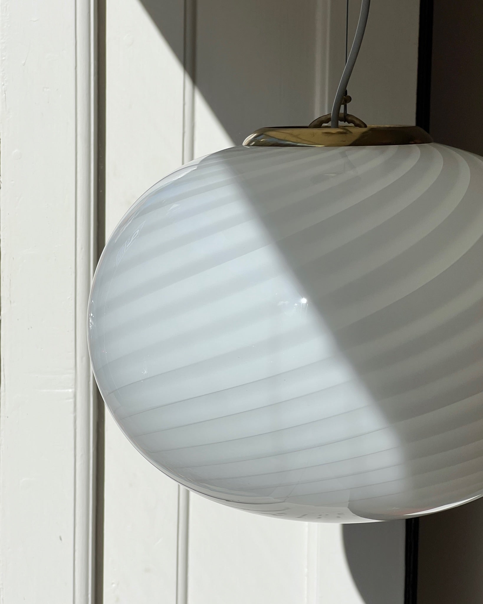 Vintage Murano white swirl ceiling lamp, Oval shape, D35 x H27 cm.