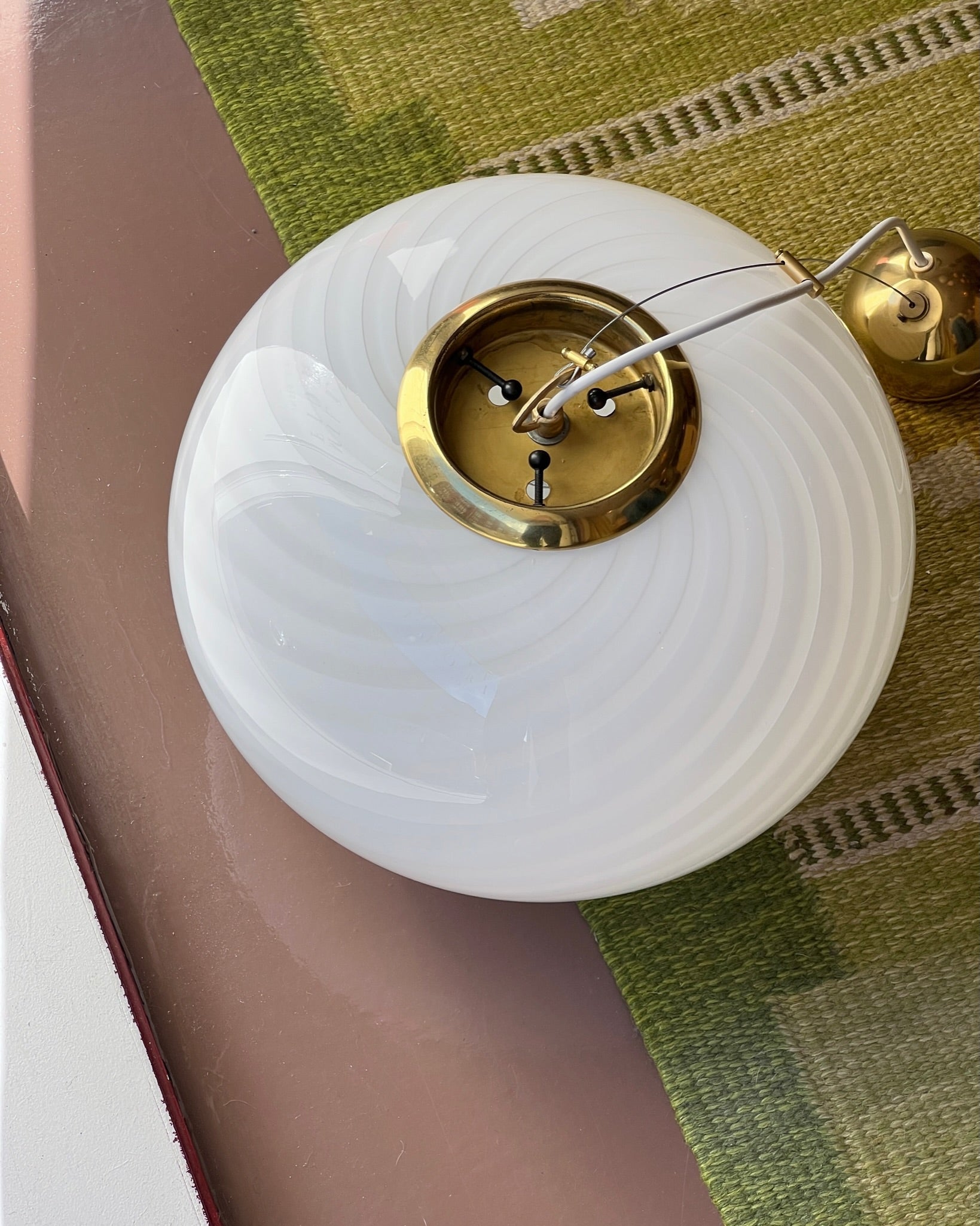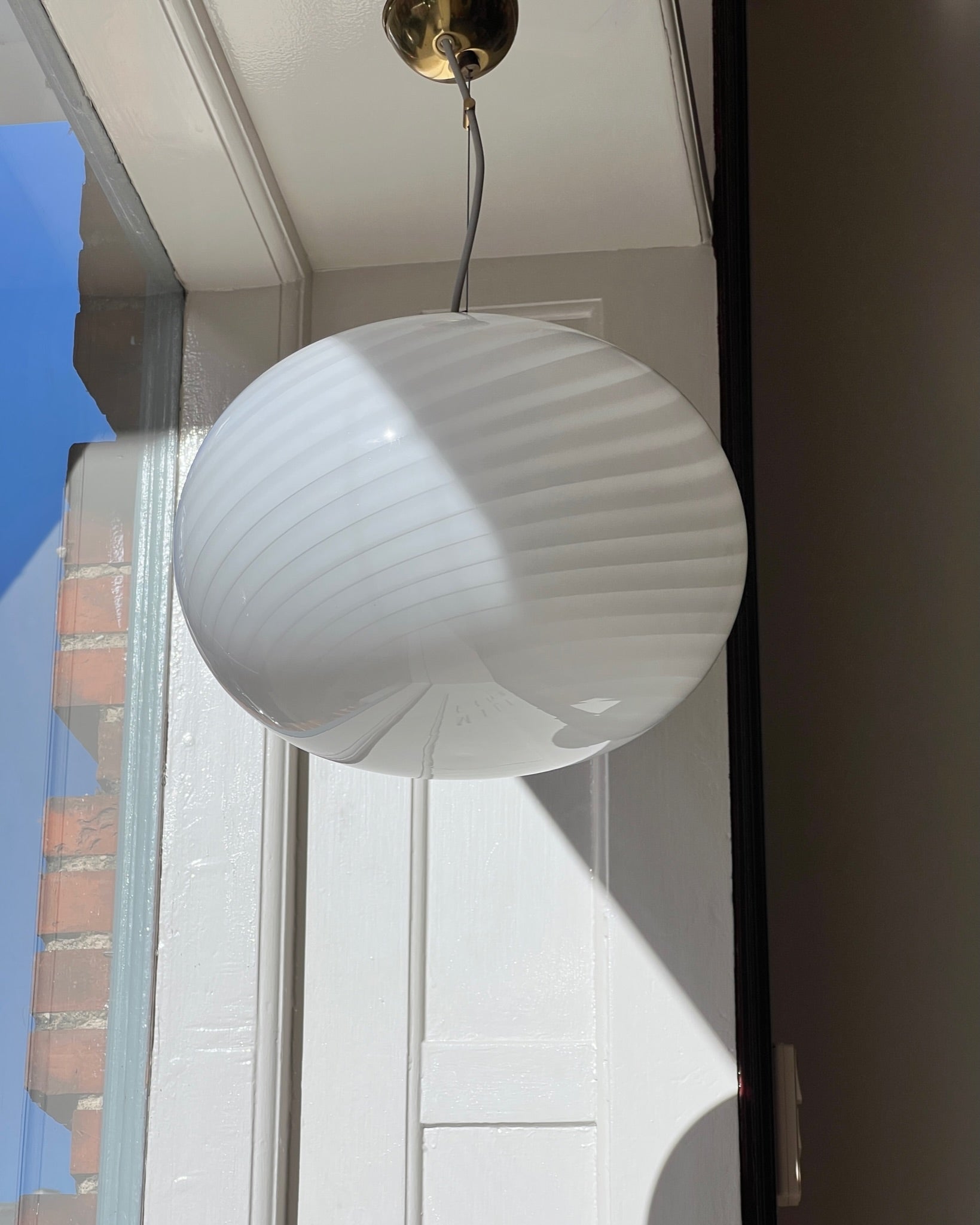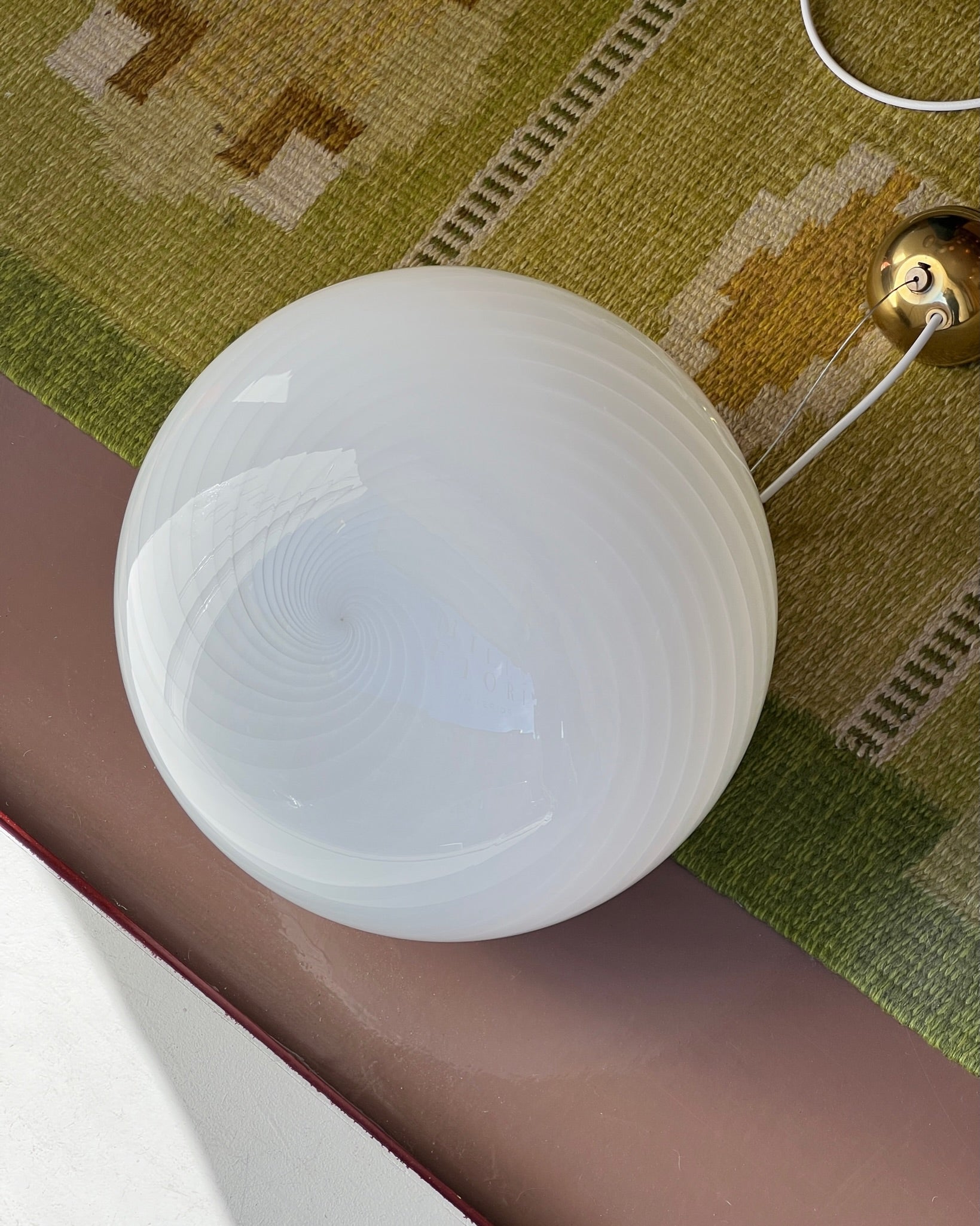 Vintage Murano oval white swirl ceiling lamp (D35)