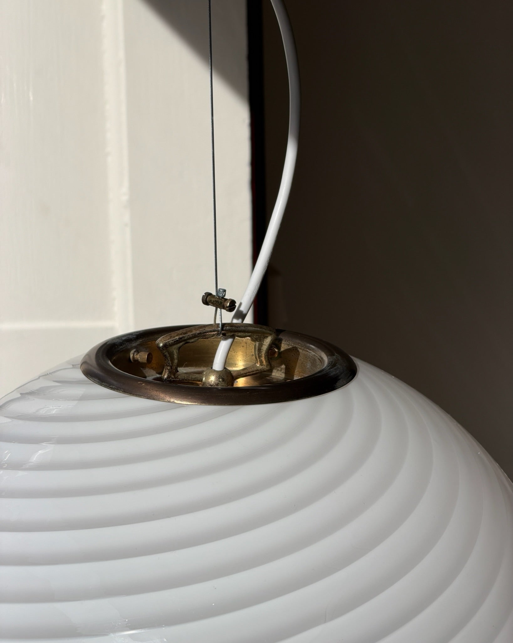 Vintage Murano white swirl ceiling lamp (D40)