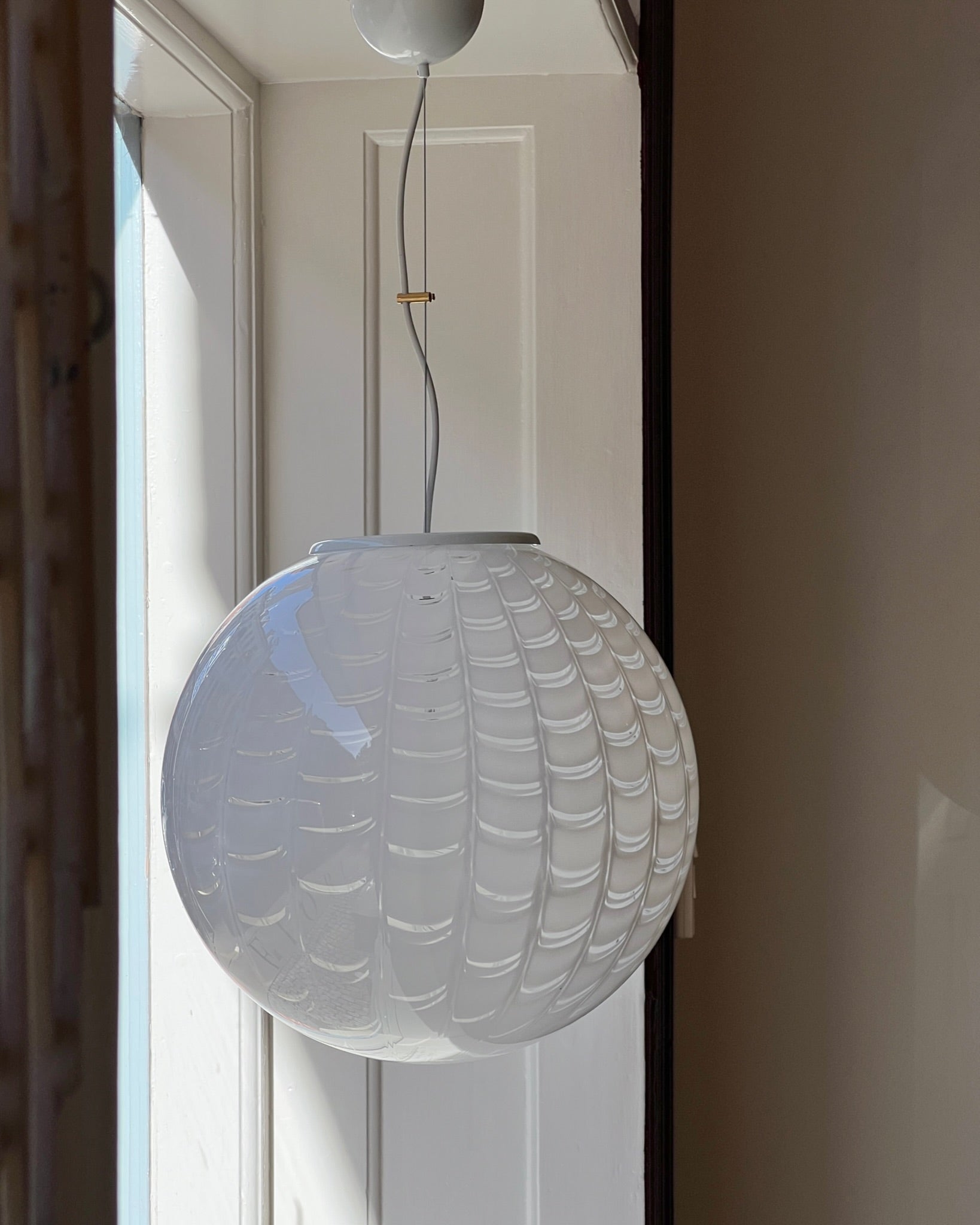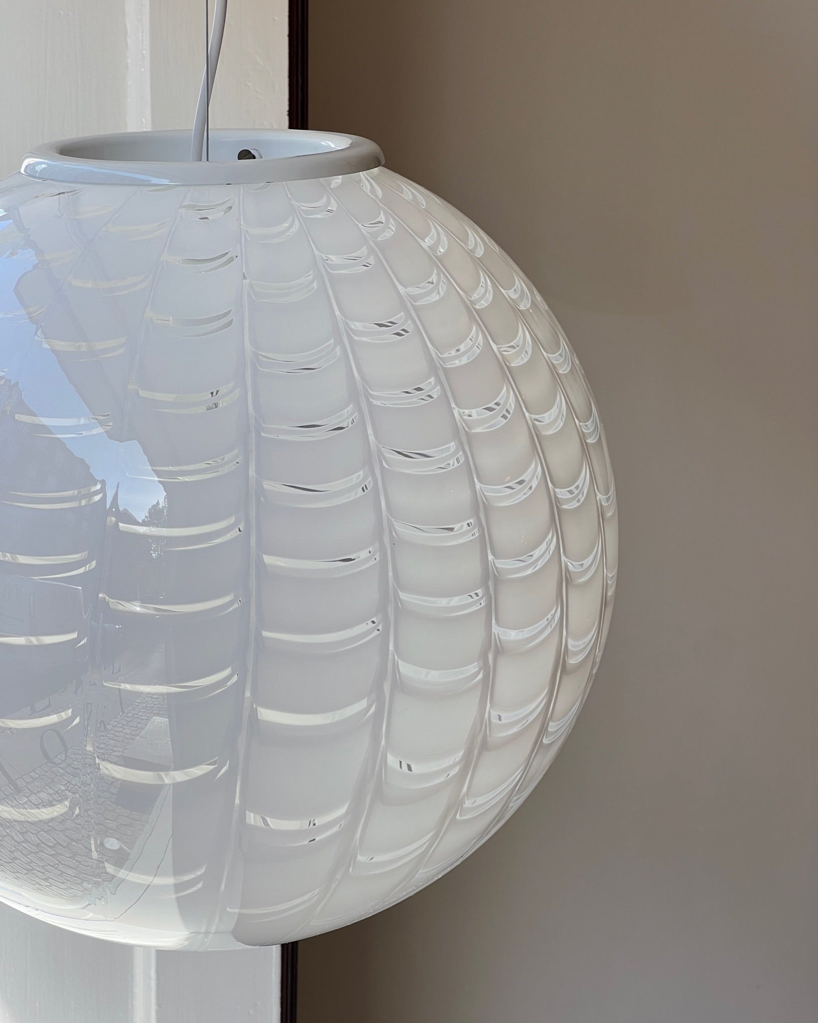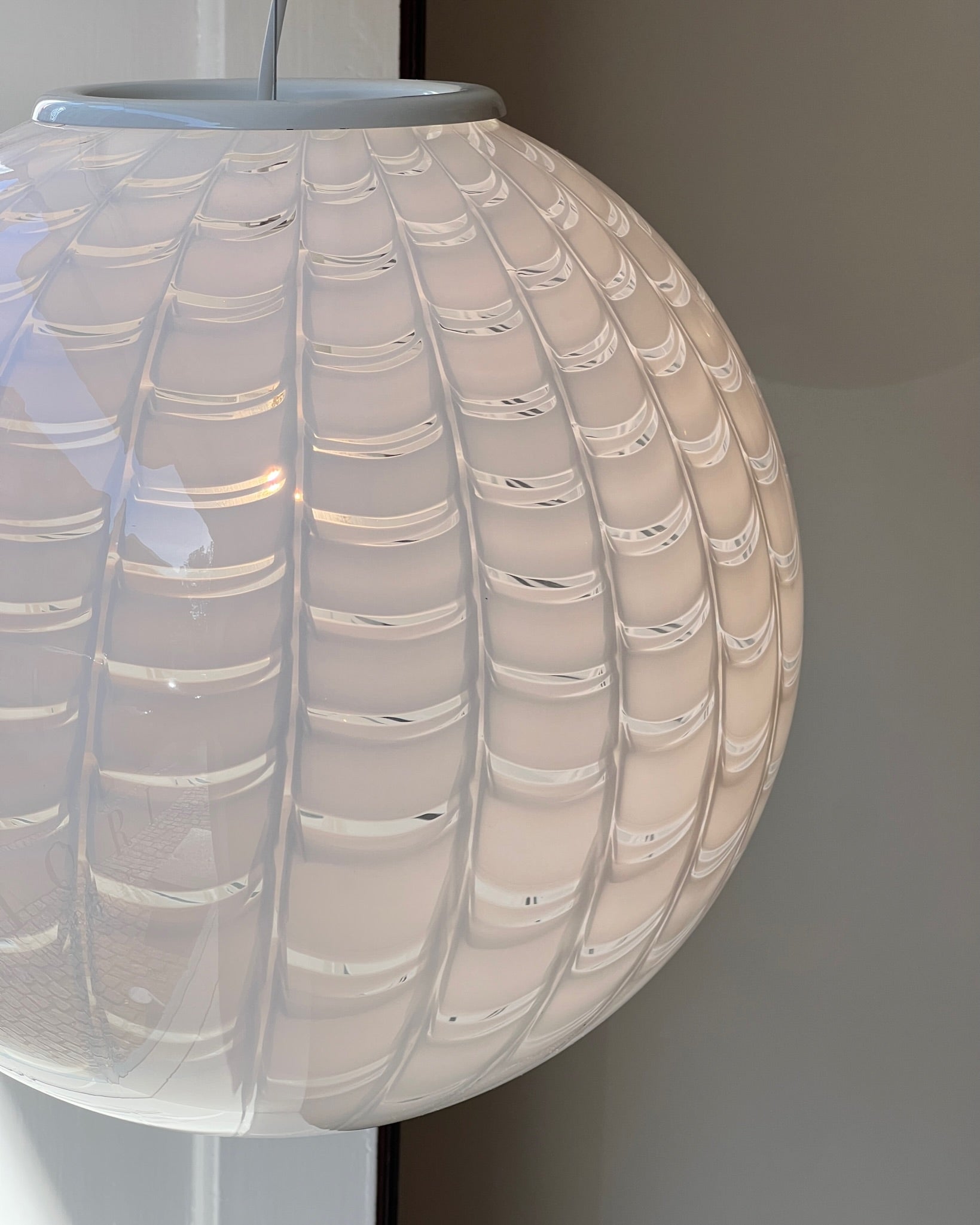 Vintage round white pattern Murano ceiling lamp (D40)