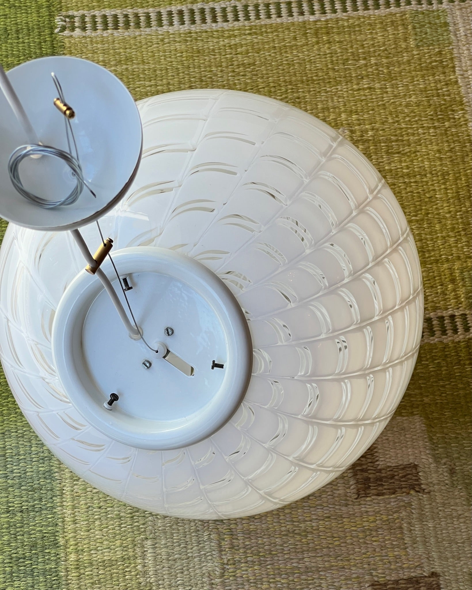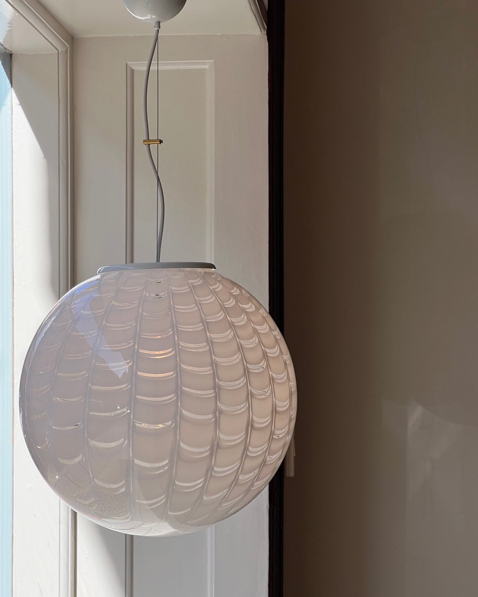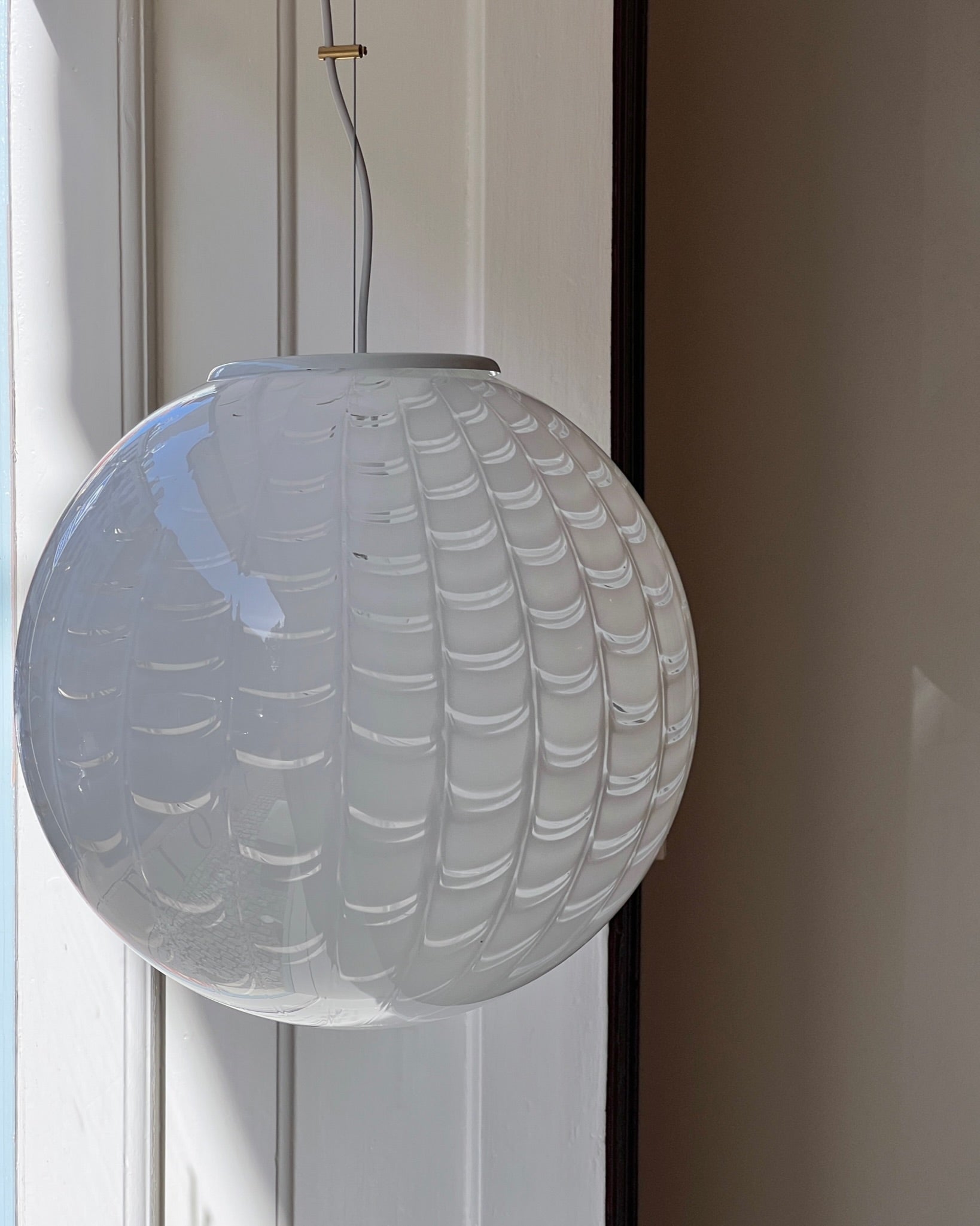 Vintage round white pattern Murano ceiling lamp (D40)