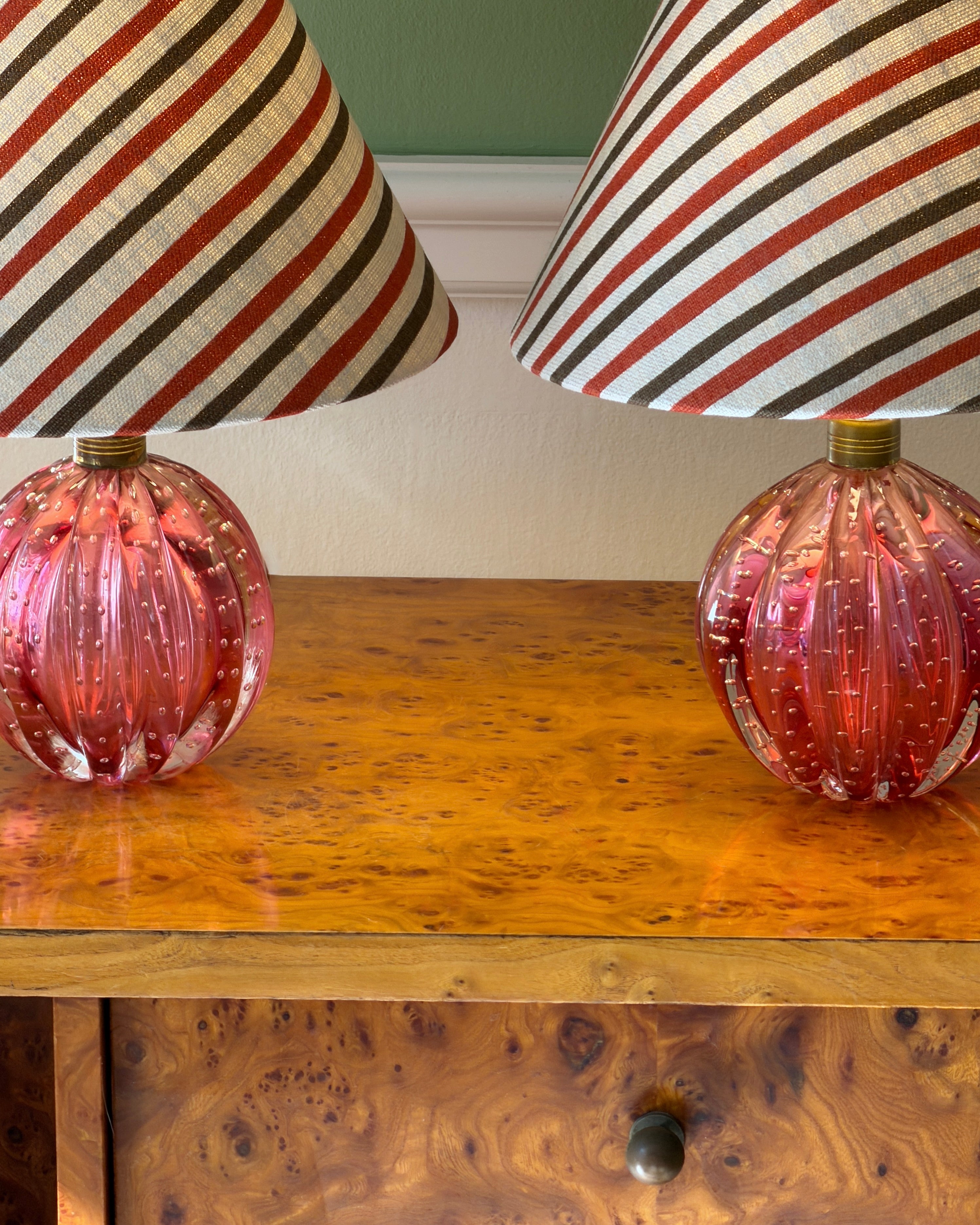 Vintage pink Murano table lamp. Pictured with the Anna Lisa lampshade in Rust by Cathy Nordström. Please select your preferred lampshade using the option below.
