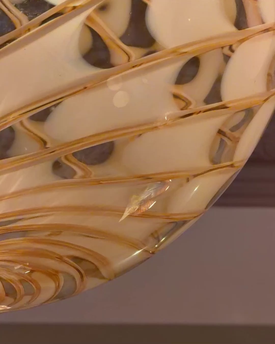 The lamp creates a beautiful play of light and shadows in any room due to its transparent glass and beautiful unique swirl pattern.