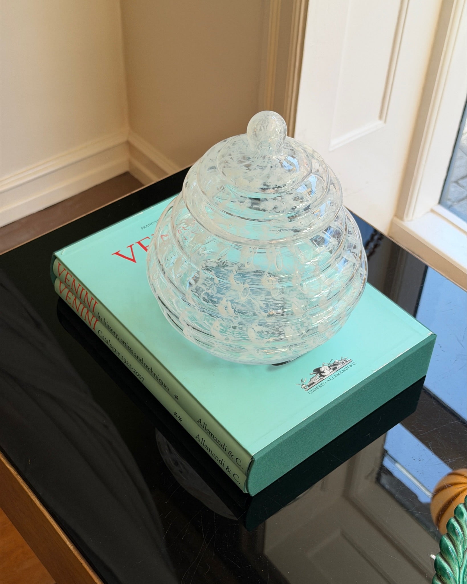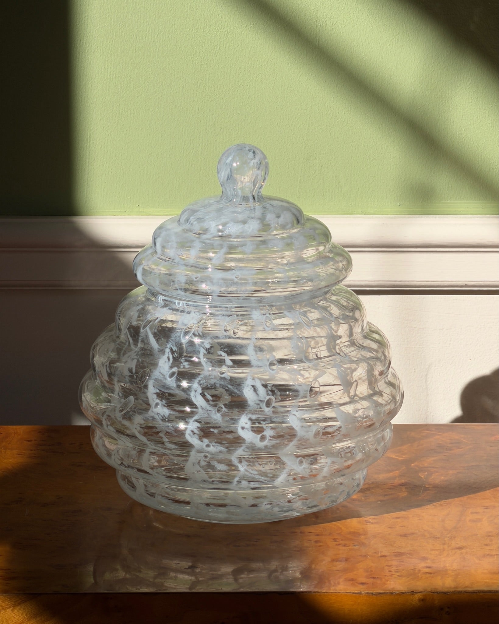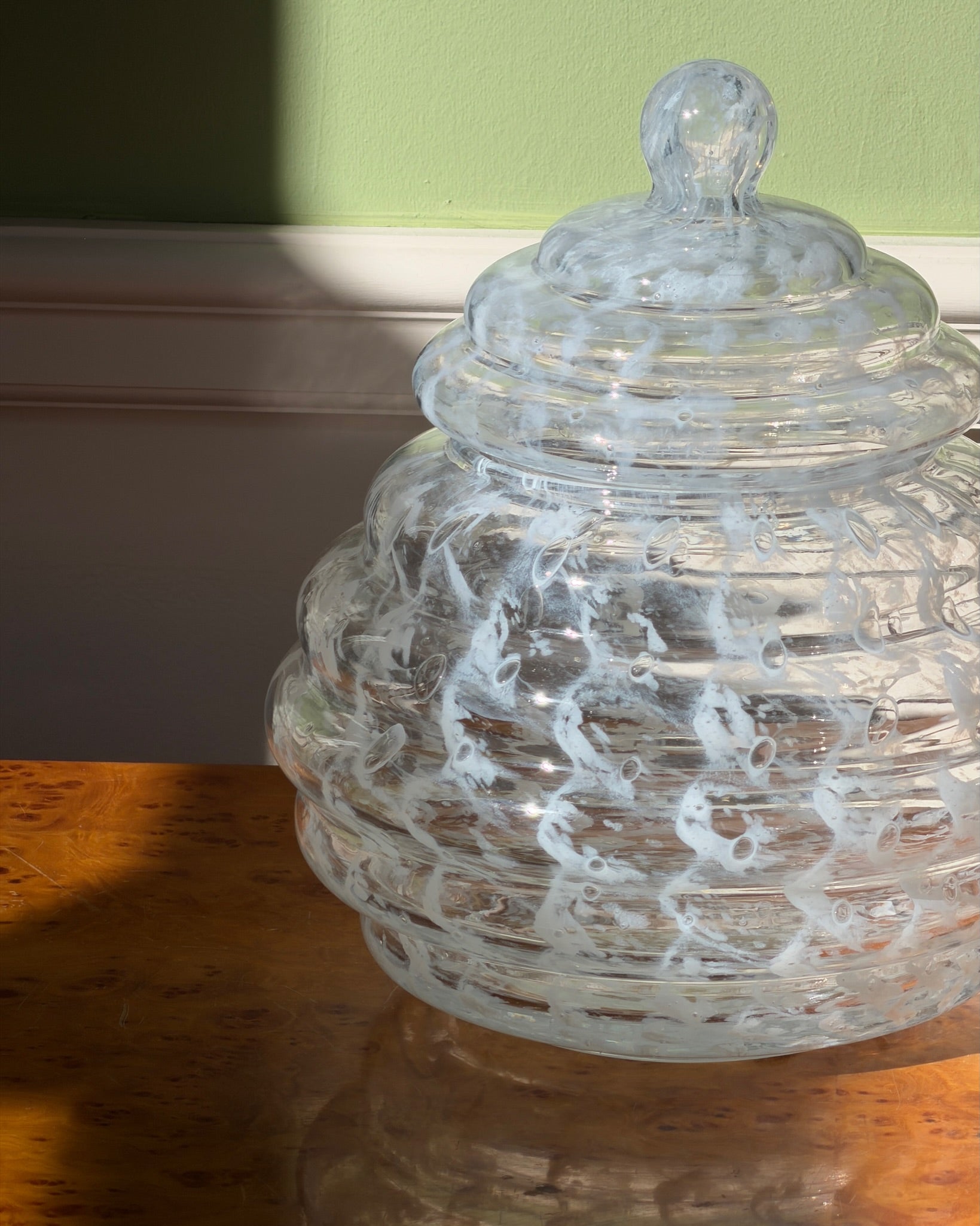 Vintage large clear/white Murano bonbonniere