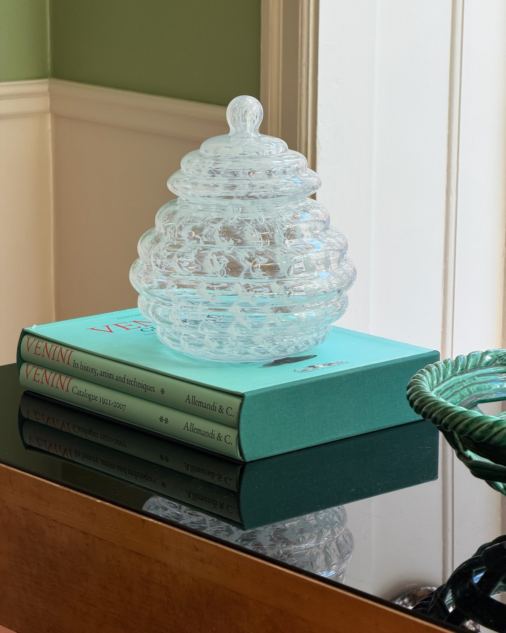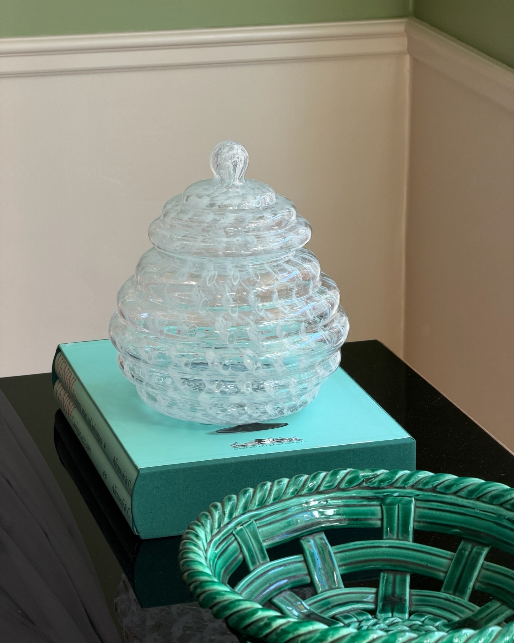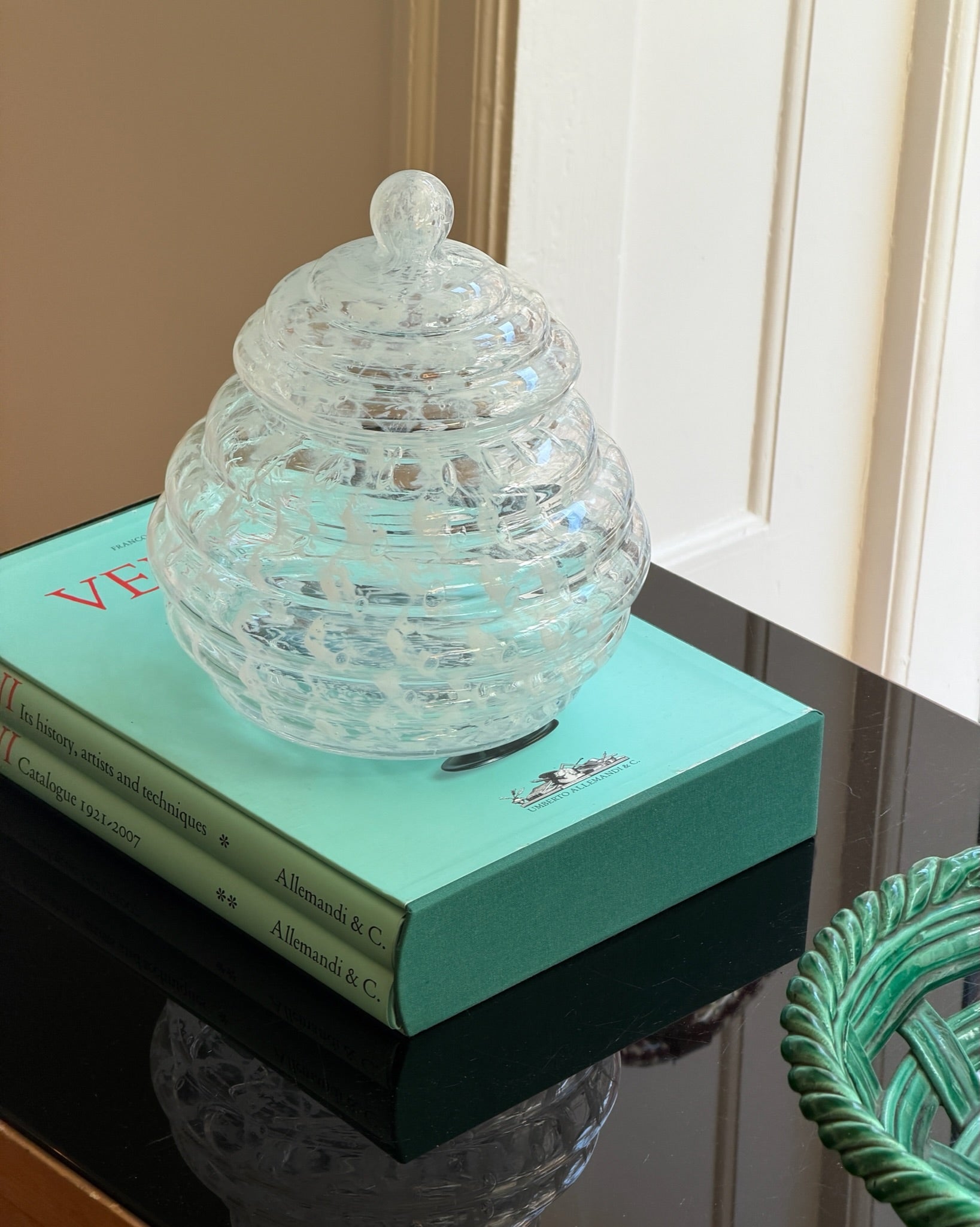 Vintage large clear/white Murano bonbonniere
