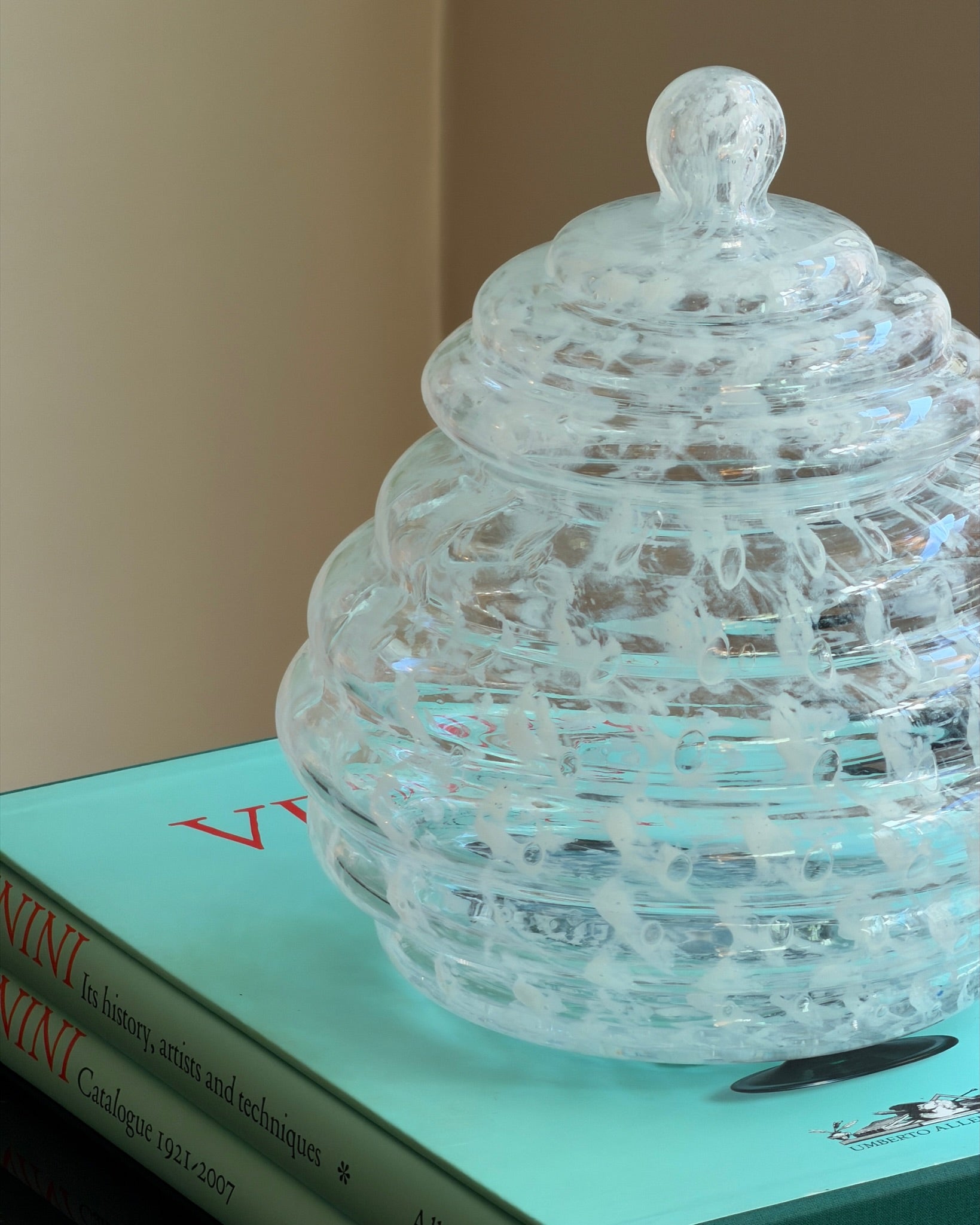Vintage large clear/white Murano bonbonniere, Italy 1970s